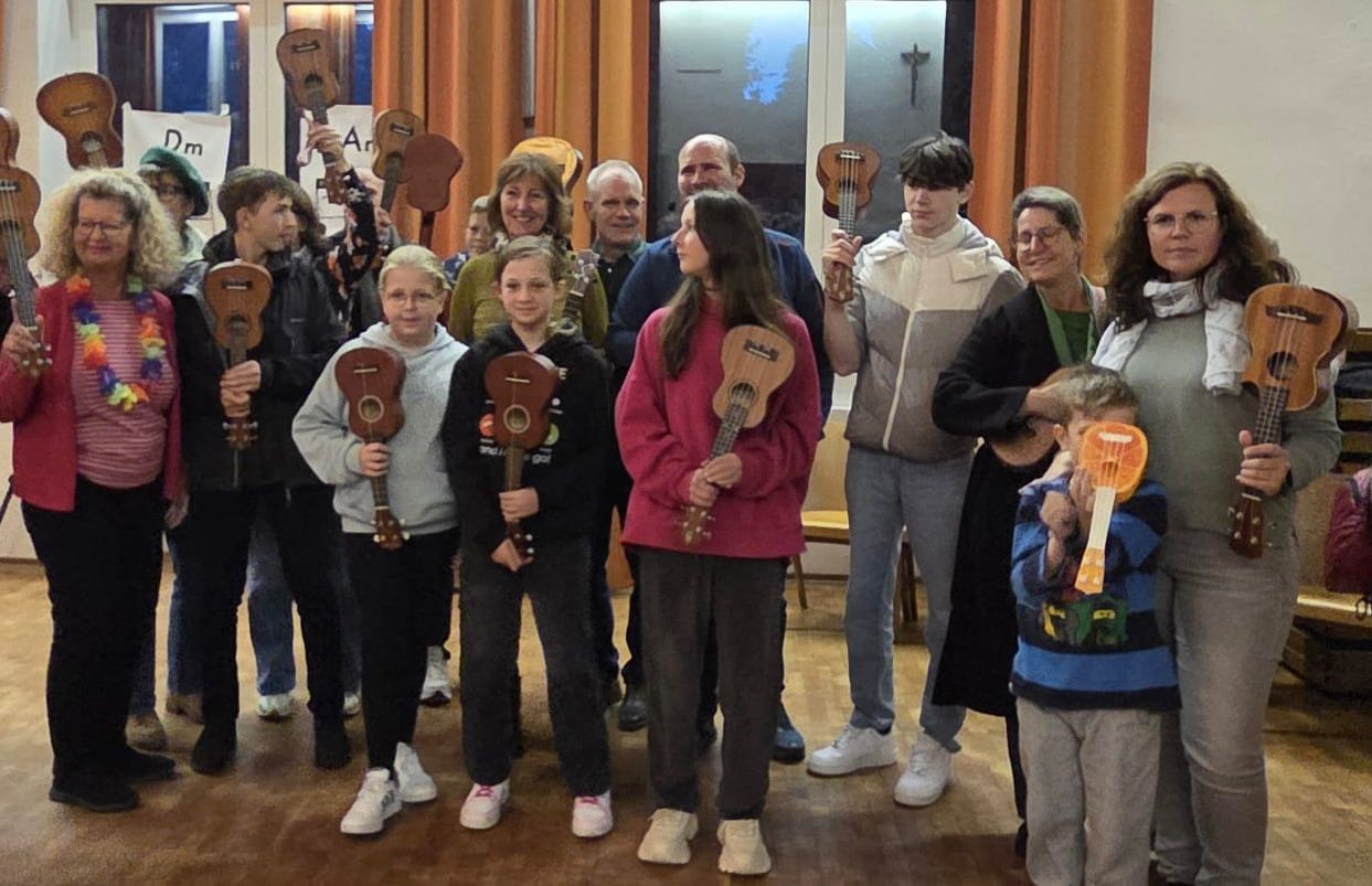Zum ersten Mal beteiligte sich auch die Mittelschule Bad Brückenau mit ihrer neu gegründeten Ukulelen-AG. Unter der professionellen Leitung der Musiklehrer Ulrich Heininger und Volker Waldau kamen ungefähr 100 Kulturbegeisterte im Katholischen Pfarrheim zum gemeinsames Musizieren und Singen zusammen.
