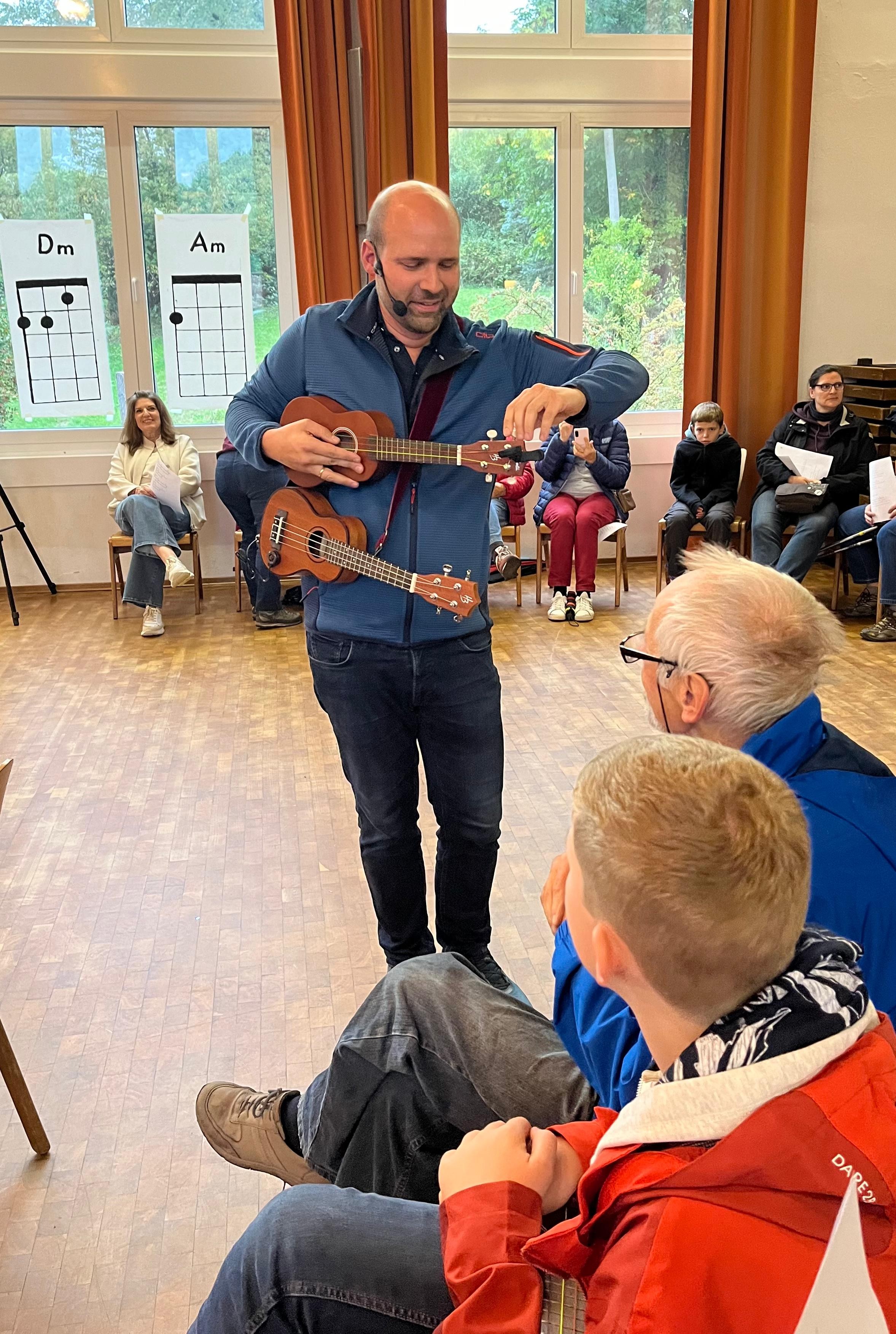 Zum ersten Mal beteiligte sich auch die Mittelschule Bad Brückenau mit ihrer neu gegründeten Ukulelen-AG. Unter der professionellen Leitung der Musiklehrer Ulrich Heininger und Volker Waldau kamen ungefähr 100 Kulturbegeisterte im Katholischen Pfarrheim zum gemeinsames Musizieren und Singen zusammen.